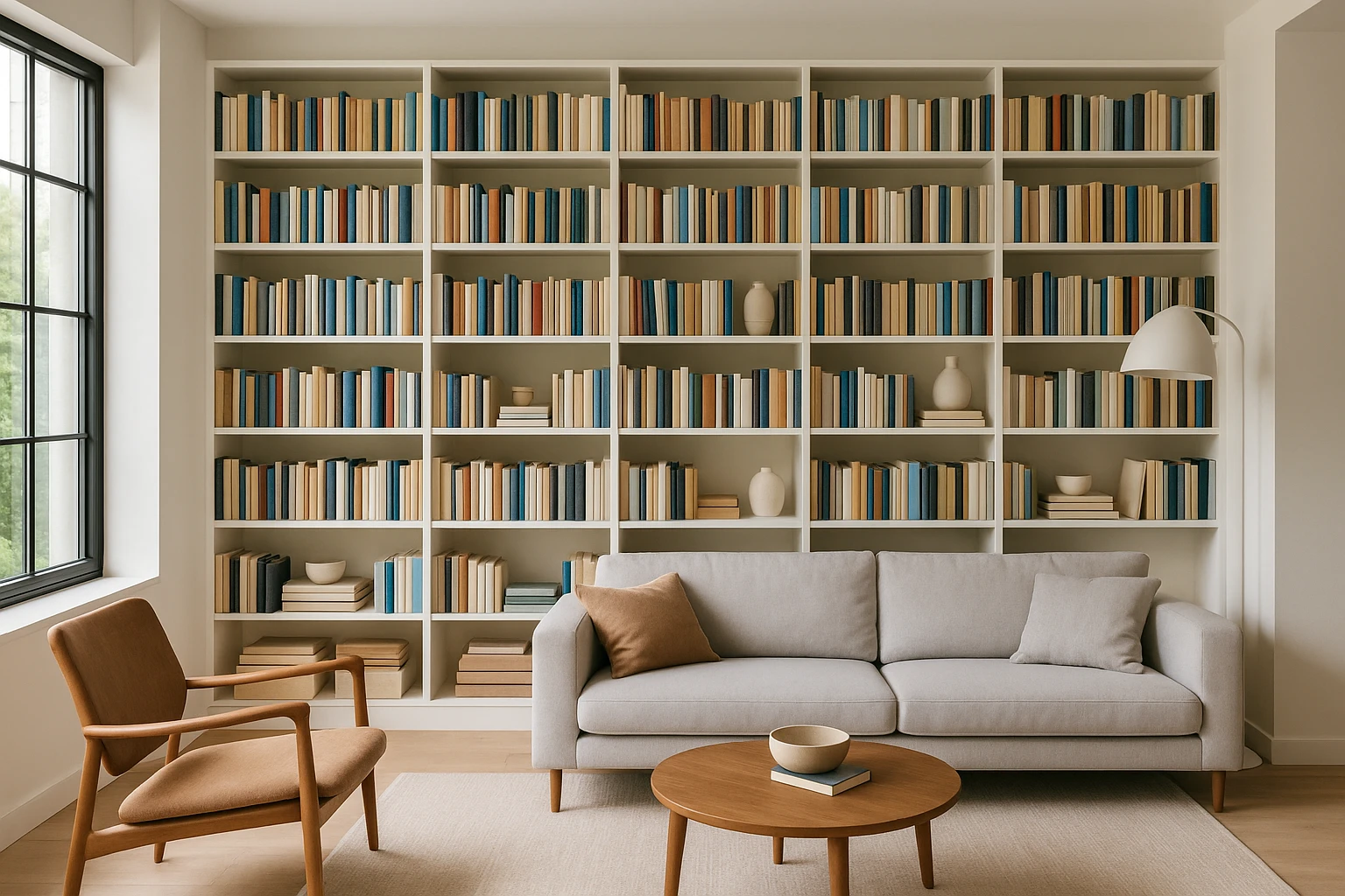 Зручна система зберігання - це розподіл за жанрами, тематикою, алфавітом або кольором обкладинок. Таким чином книги легко знаходити, а домашній простір лишається охайним. Добре розділяти художню літературу, нон-фікшн, видання для дітей, довідкові чи мистецькі збори, при цьому залишаючи місце для постійного оновлення колекції.